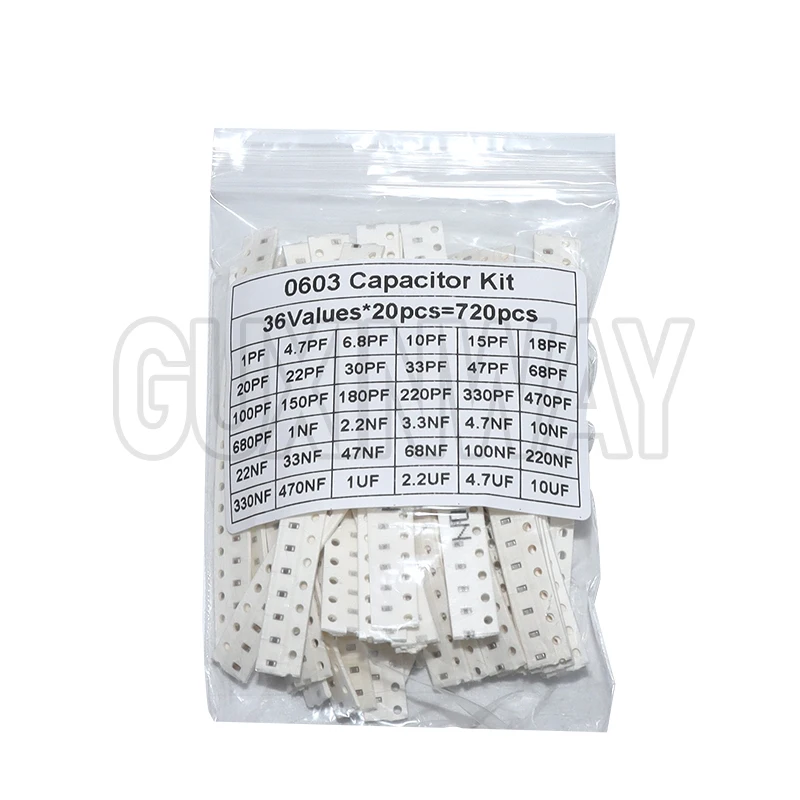 320 pièces 720 pièces 0603 0805 1206 Kit de condensateur SMD Kit assorti 16/36/values 1PF ~ 1UF