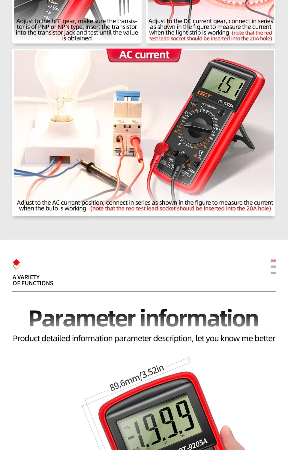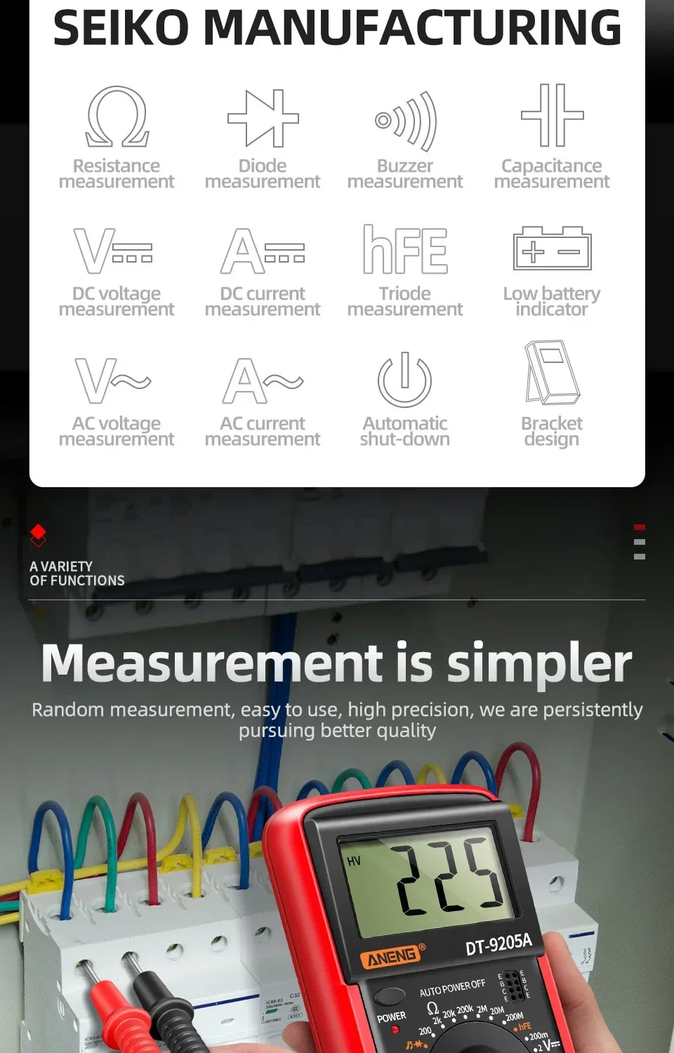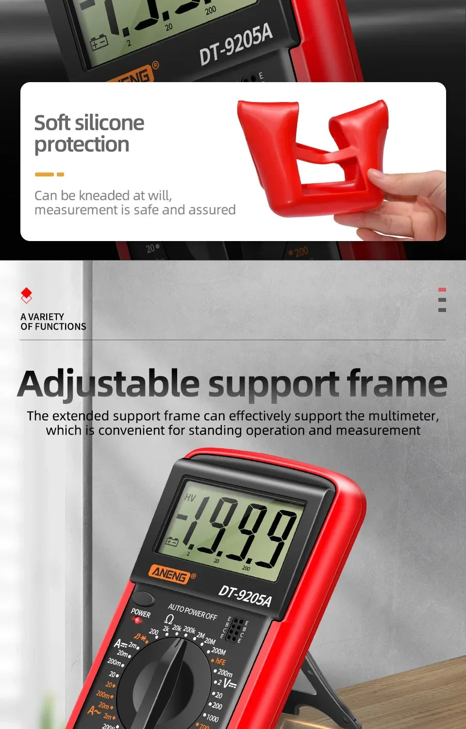 ANENG DT9205A multimètre numérique testeur de Transistor AC/DC compteur de Test électrique NCV professionnel analogique gamme automatique multimètre