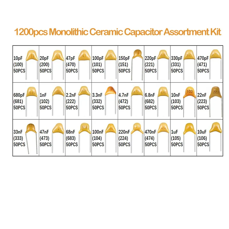 Kit de puzzles en céramique monolithique multicouche, 10pF-10uF, 50V, avec boîte, 24 spécifications, 1200 pièces